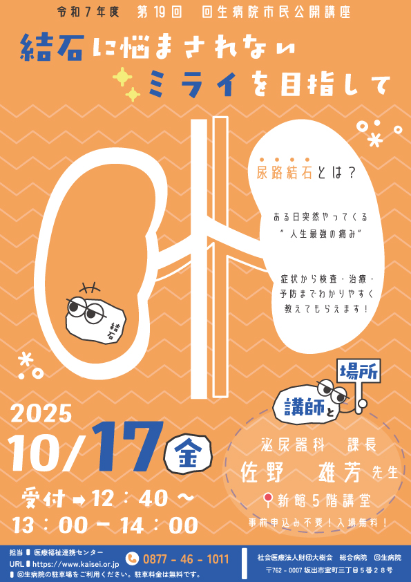 当院では、市民の皆様および院内の患者様、スタッフの皆様に向けて、以下の通り公開講座を開催いたします。