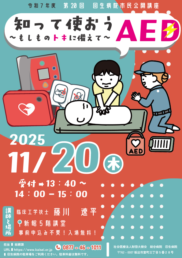 当院では、市民の皆様および院内の患者様、スタッフの皆様に向けて、以下の通り公開講座を開催いたします。