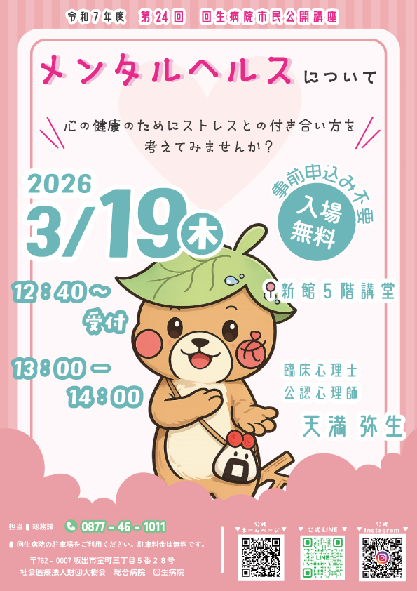 当院では、市民の皆様および院内の患者様、スタッフの皆様に向けて、以下の通り公開講座を開催いたします。